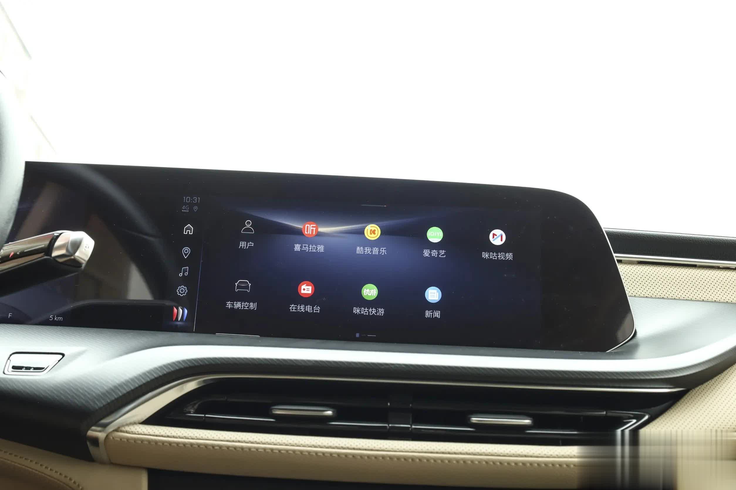 内饰方面,新车搭载双12.3英寸悬浮联屏,内置别克eConnect系统,支持“可见即可说”语音交互(官方称25秒内完成10条连续指令),并接入DeepSeek应用生态,同时保留CarPlay手机互联。怀挡设计的引入释放了中控区域空间,原换挡杆位置改为手机无线充电面板。