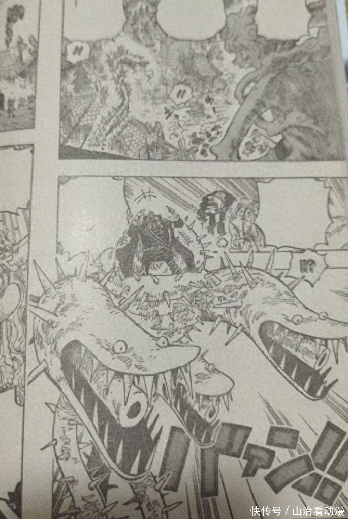 索玛兹圣发起攻击,他想要射杀这些孩子和家长,索隆跑过来击飞了这些荆棘,尼卡路飞也手持闪电,他直接一拳过去,索玛兹圣完全没有看到尼卡路飞,他看到巨大的拳头杀过来,这一招就把索玛兹圣秒杀。