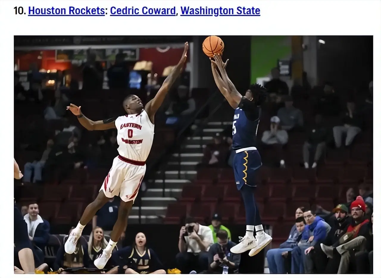 考沃德虽然是大龄新秀,但他在联合试训后行情不降反升,吸引了不少NBA高管的目光,他的情况让人想起了雷霆的杰伦-威廉姆斯。杰伦-威廉姆斯曾经被认为上限不高,选秀行情一开始只是首轮末,后来被雷霆用12号签拿下,如今已经成长为全明星球员。而火箭用3号签选中的小史密斯仍然没能兑现天赋。