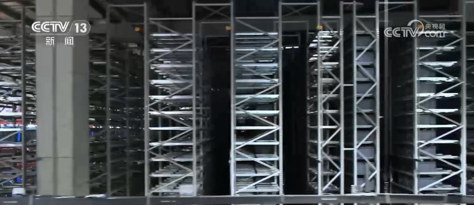 除了机器人员工的加入,通过镜头,大家可以看到,整座仓库的占地面积有3000多平方米,相当于7个标准篮球场的大小。12米高的货架能储备上万个箱子的货品,相当于一个小型超市的全年备货量。因此,仓储效率提高的第二个原因是空间的高效利用。